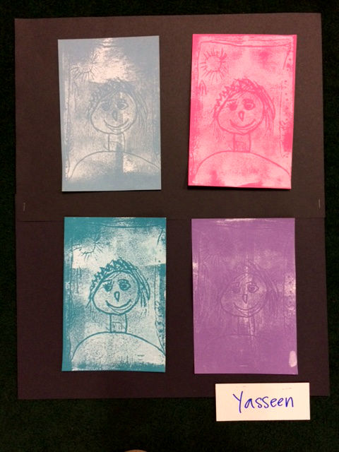 Then we moved on to color mixing. Red with blue, blue with yellow, yellow with red. And even though the kids knew in their minds what colors to expect it was an absolute delight to see how excited they were when it actually happened. Secondary colors mixed, they painted the final 3 sheets with green, purple and orange.
